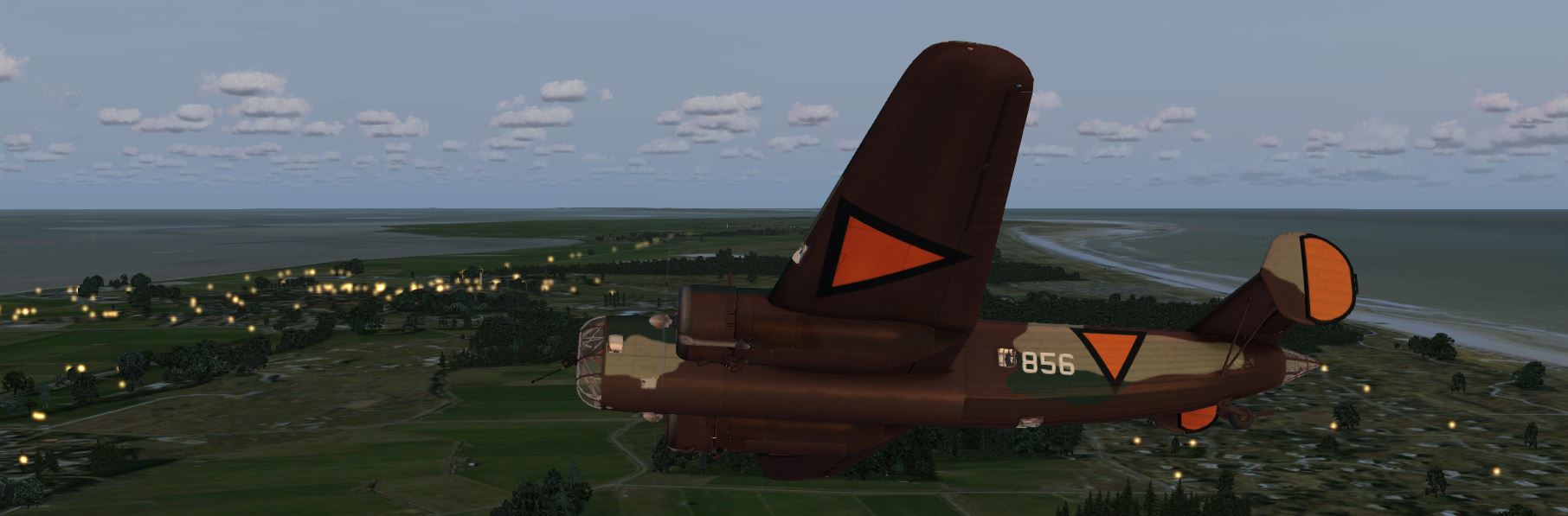 I also made another texture for the T.5: the 850. This registration has also an operational history, comparable with the 856. Here we see both stablemates flying over the Waddenzee.